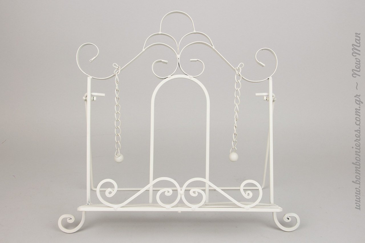 Κι επειδή ένα τόσο σημαντικό αντικείμενο πρέπει να έχει αντίστοιχα και την ιδιαίτερη θέση του, σας προτείνουμε να προμηθευτείτε τον μεταλλικό βιβλιοστάτη σε λευκό χρώμα και παραδοσιακό στυλ, που θα αναδείξει και με το παραπάνω την τρυφερή θέση που κατέχουν τα τετράδια όχι μόνο στην καρδιά σας αλλά και στο βασίλειο της κουζίνας σας.