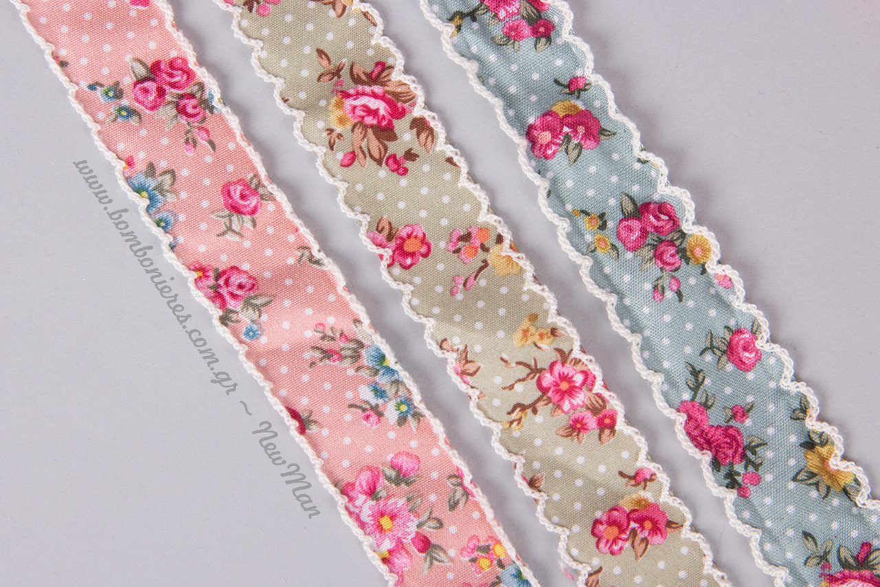 Υπέροχη λεπτομέρεια η δαντέλα που υπάρχει περιμετρικά στην υφασμάτινη φλοράλ κορδέλα (095263).