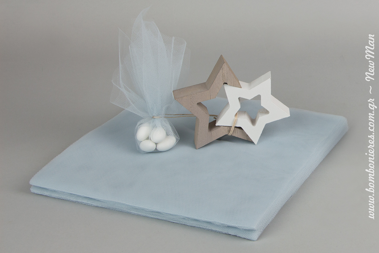 Κι αν το θέμα αστεράκι, σας αρέσει τόσο πολύ που σκέφτεστε να το επιλέξετε και για τη βάπτιση της μικρής σας πριγκίπισσας, μη διστάσετε να προσαρμόσετε τη μπομπονιέρα σε κοριτσίστικους τόνους, χρησιμοποιώντας αντί για γαλάζιο τούλι, τούλι σε ροζ ή φούξια αποχρώσεις.
