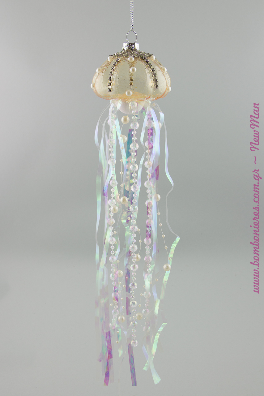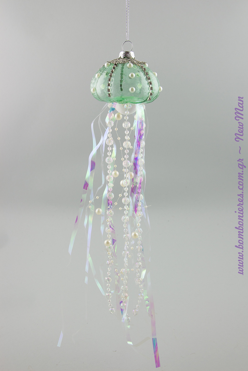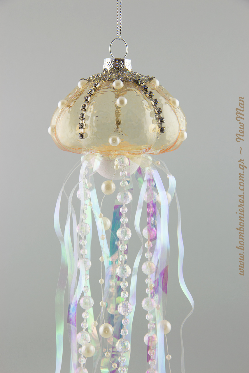 Ναι, προτιμάμε να μην τις συναντήσουμε στη θάλασσα, αλλά δεν μπορούμε παρά να παραδεχτούμε ότι είναι αιθέριες και πανέμορφες. Αυτή η διάφανη ομορφιά τους, νομίζουμε αποδόθηκε υπέροχα με την τεχνική κρακελέ, τις μεταλλικές λεπτομέρειες και τις όμορφες σειρές από χαντρούλες-πλοκάμια. Σε δυο αποχρώσεις (βεραμάν- εκρού) θα απογειώσουν τη διακόσμησή σας, δίνοντας ένα ιδιαίτερα πρωτότυπο ύφος στα φετινά Χριστούγεννα.