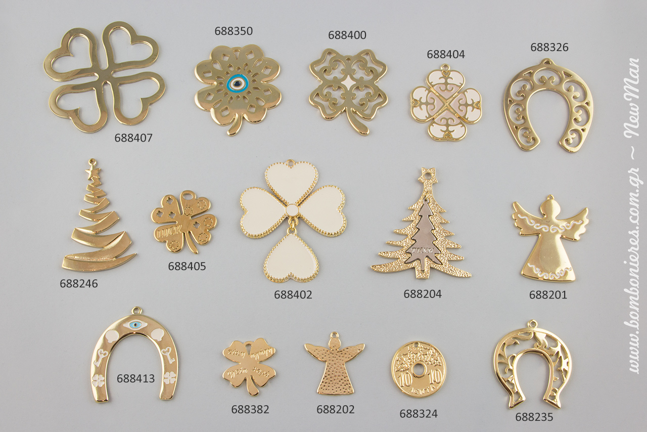 Το κατάστημα Newman στηρίζει την ελληνική παραγωγή και ευρεσιτεχνία και με χαρά σας παρουσιάζει μια σειρά από υπέροχα μεταλλικά διακοσμητικά στοιχεία σε χρυσαφένια απόχρωση, κατάλληλα για όλες τις περιστάσεις και χρήσεις: από τα DIY γούρια-δωράκια σας μέχρι τις μπομπονιέρες, τα στολίδια, τα κοσμήματα ή τη διακόσμηση κάθε είδους δημιουργικού σας project. Με ειδική επεξεργασία επιμετάλλωσης, έχουν μεγάλη αντοχή στο χρόνο και είναι πανέμορφα.