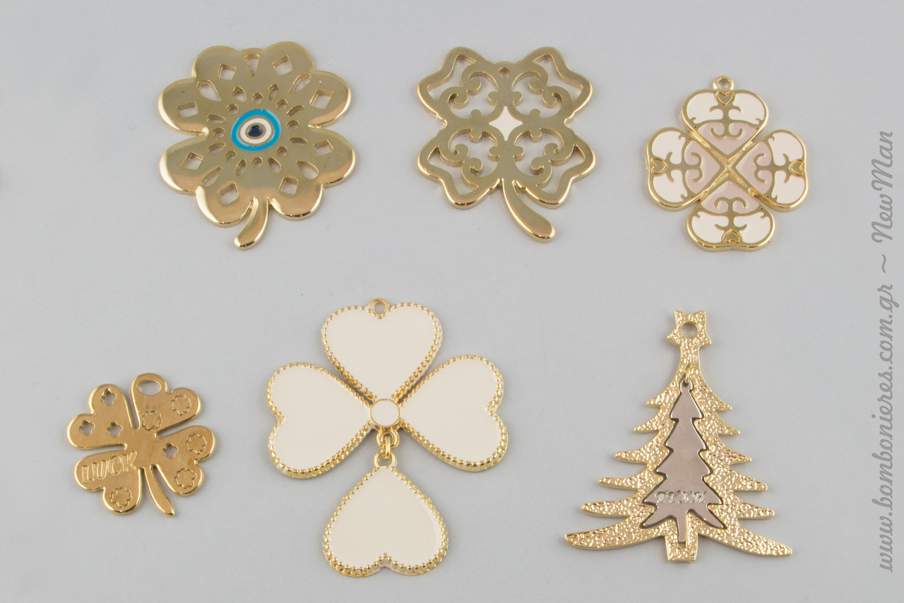 Δεντράκια, πέταλα, αγγελάκια, δεκάρες και τετράφυλλα τριφύλλια είναι όλα δυνατά σύμβολα τύχης & προστασίας και θα αποτελέσουν το ιδανικό μέσο για να ευχηθείτε στους αγαπημένους σας, ευημερία και ευτυχία τις μέρες των Γιορτών.