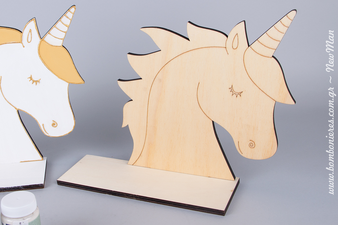 Σε περίπτωση που επιλέξετε το θέμα Μονόκερως για τη βάπτιση της μικρής ή του μικρούς σας – το θέμα είναι ένα από τα πιο δημοφιλή φέτος το καλοκαίρι στον κόσμο των βαπτίσεων- οι ξύλινοι Μονόκεροι θα αποτελέσουν ένα υπέροχο διακοσμητικό στοιχείο για ένα μαγικό τραπέζι ευχών ή για τον μπουφέ της δεξίωσης.